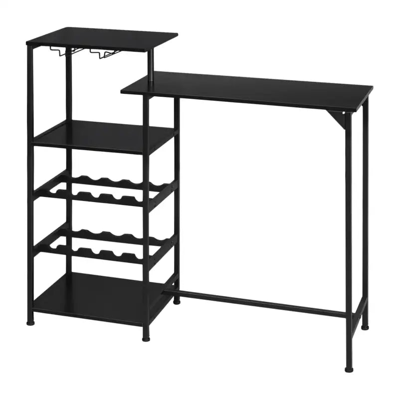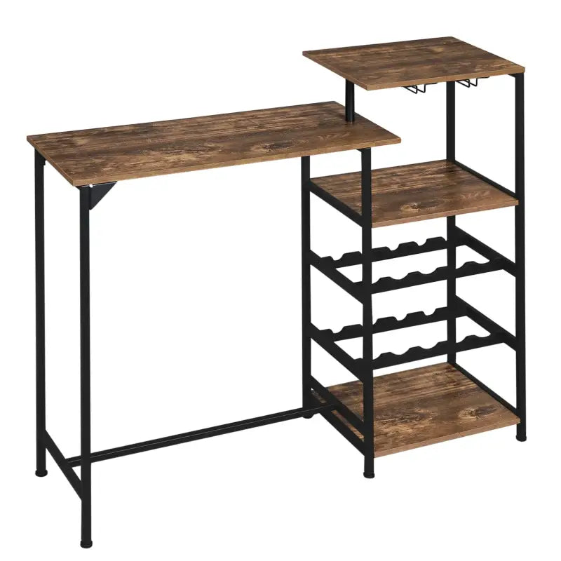Cette table de bar de BukkitBow est non seulement fonctionnelle, mais aussi élégamment conçue. Avec deux plateaux de table, quatre étagères (dont deux casiers à vin) et deux porte-verres à vin, cette table offre beaucoup d'espace de rangement pour toutes vos fournitures de bar.