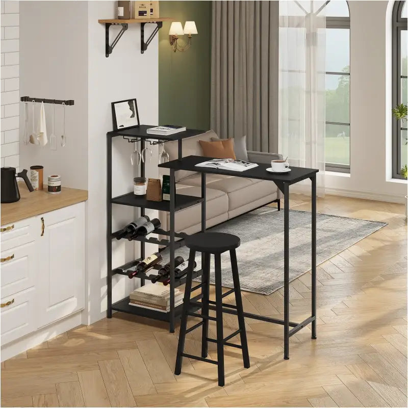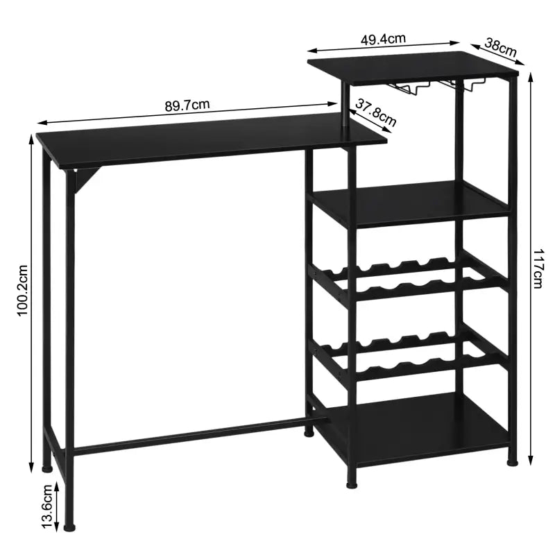 BukkitBow - Table de bar avec étagères et espace de rangement pour verres - Avec casier à vin