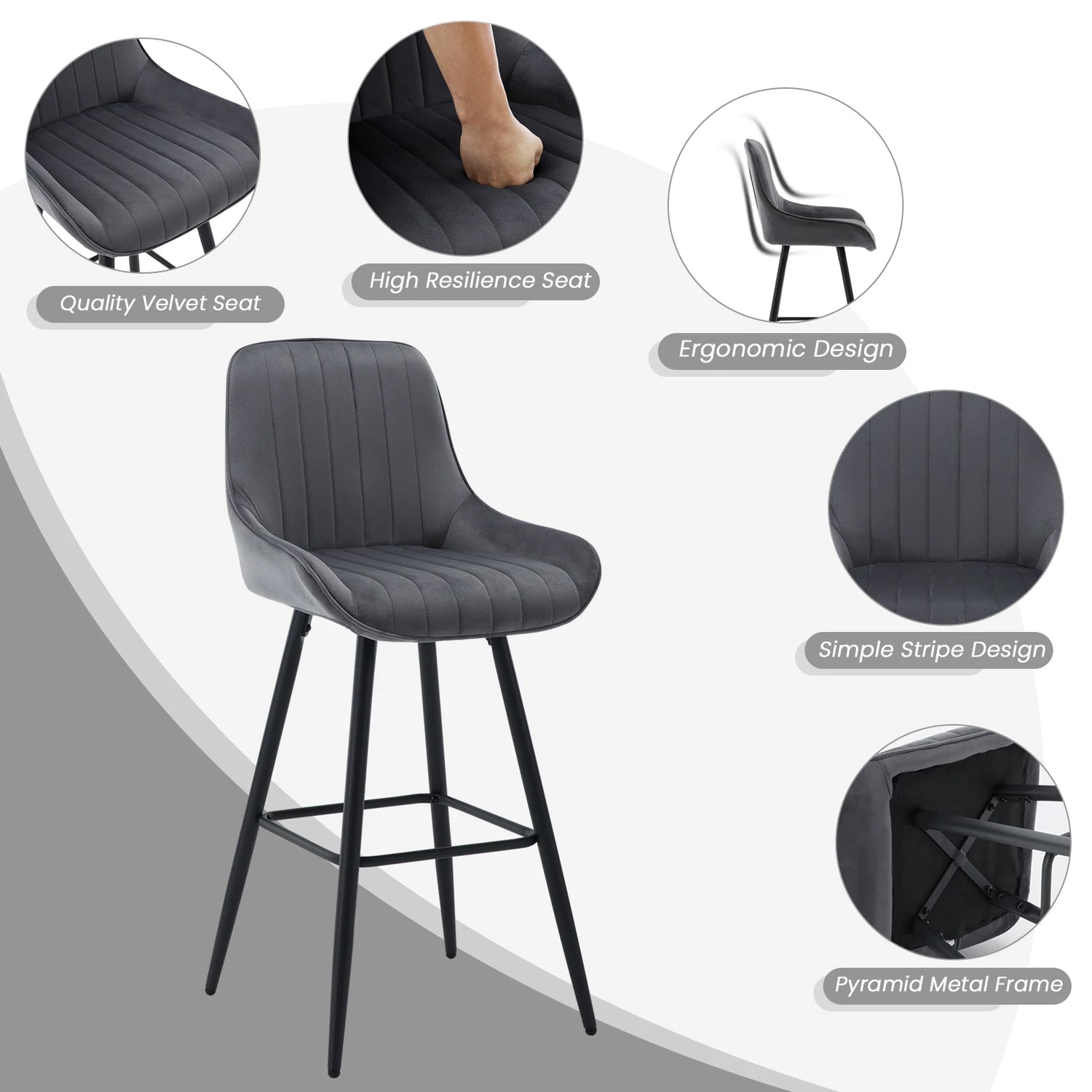 Luxe Velvet Barkrukken Set van 2 – Moderne Barstoelen met Metalen Onderstel ✨