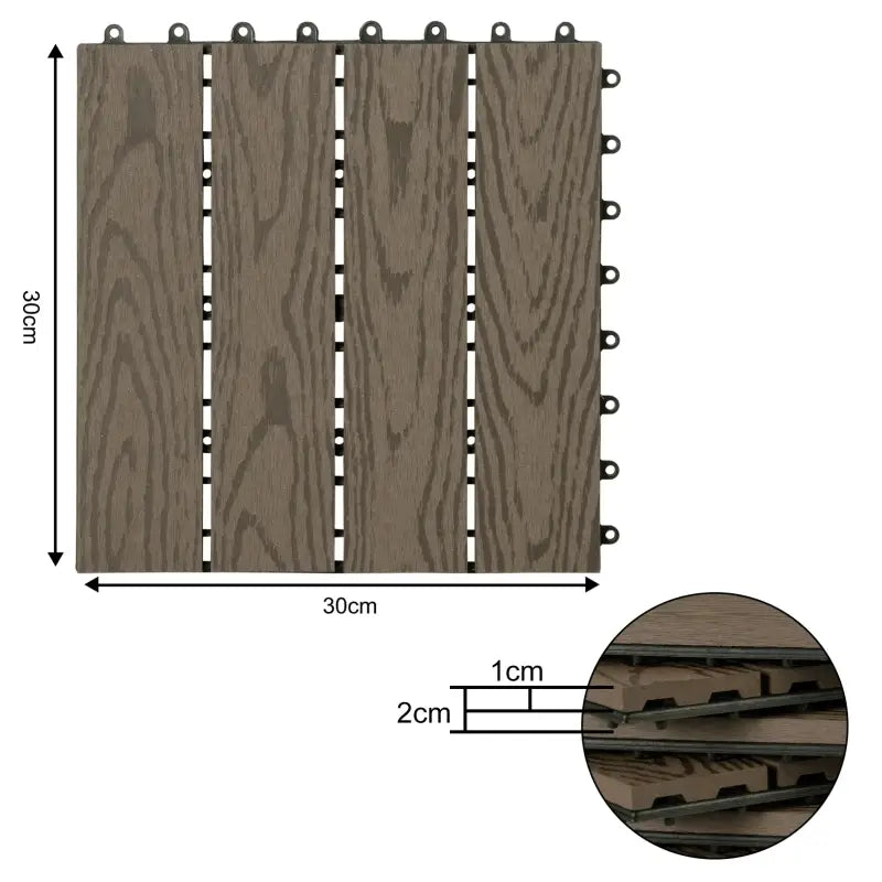 BukkitBow - Planches de terrasse / Planches de terrasse - Aspect bois - Système Quick Click - Différentes couleurs - 30x30cm - Ensemble de 11 pièces
