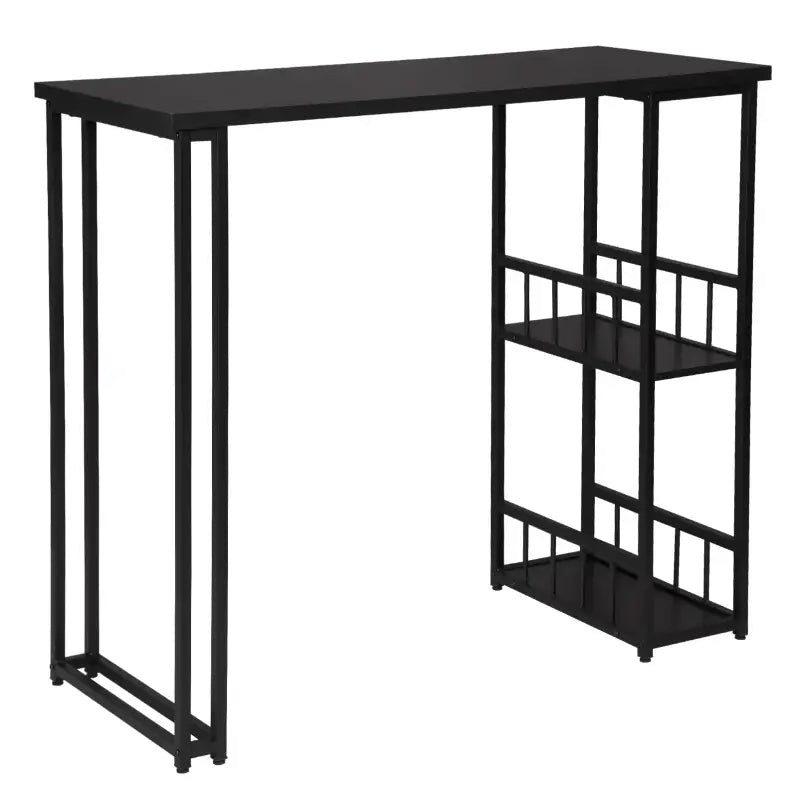 De bartafel is uitgerust met twee grote planken, ideaal voor het opbergen van wijnflessen, wijnglazen en andere keukenbenodigdheden. De planken zijn voorzien van omheiningen om te voorkomen dat je items eraf vallen. Of je nu een feestje organiseert of gewoon een maaltijd bereidt, deze tafel biedt voldoende ruimte om alles georganiseerd te houden.