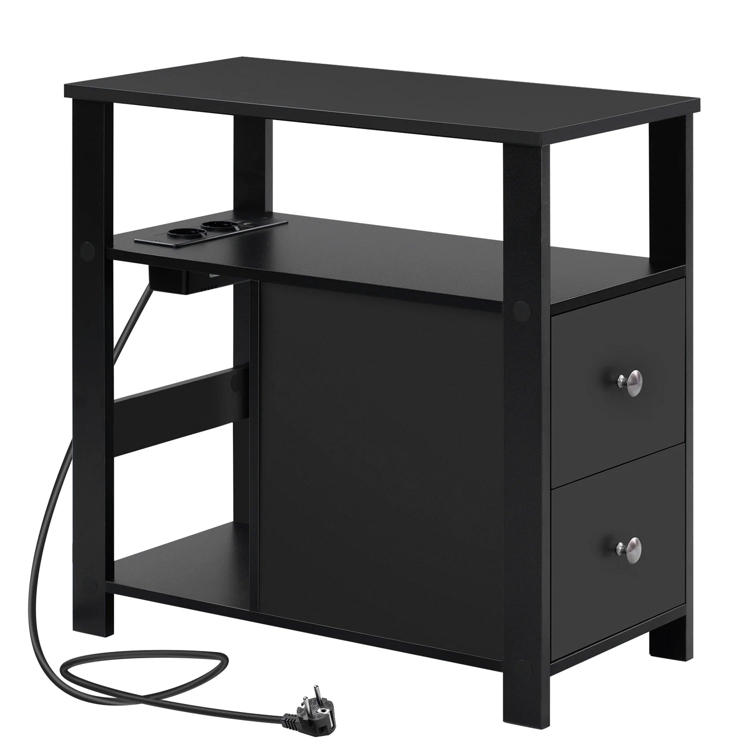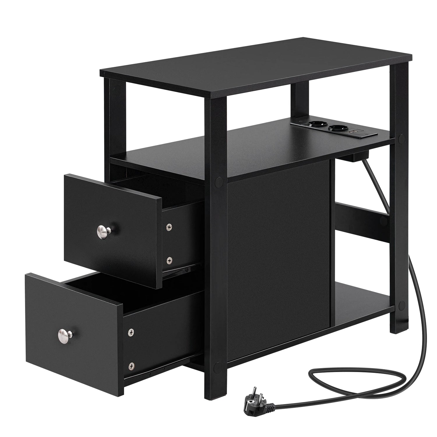 BukkitBow - Smalle Bijzettafel - Met 2Stopcontacten & 2 USB - Laden & Opbergruimte - Nachtkastje voor Woonkamer & Slaapkamer