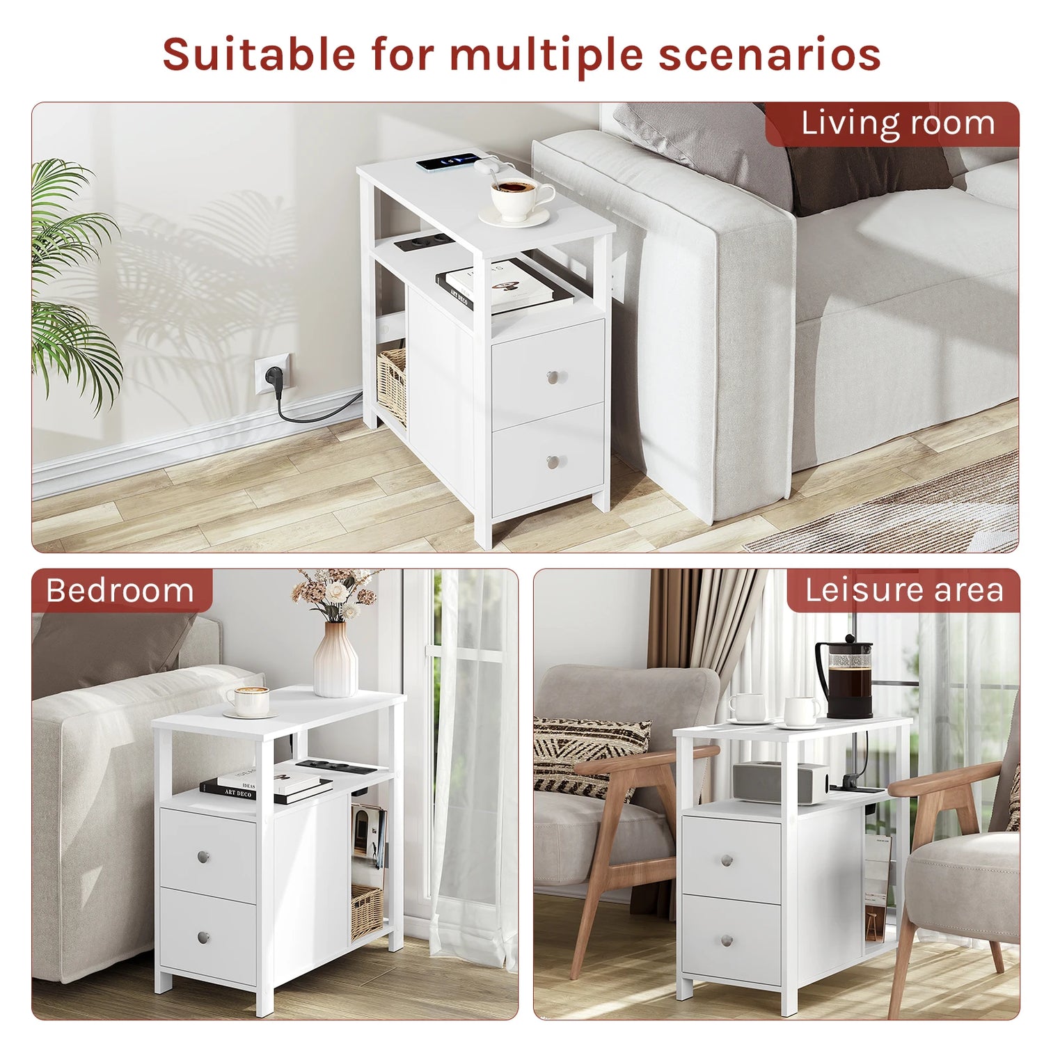 BukkitBow - Smalle Bijzettafel - Met 2Stopcontacten & 2 USB - Laden & Opbergruimte - Nachtkastje voor Woonkamer & Slaapkamer - Wit / GERMANY is nabesteld en wordt verzonden zodra het weer op voorraad is.