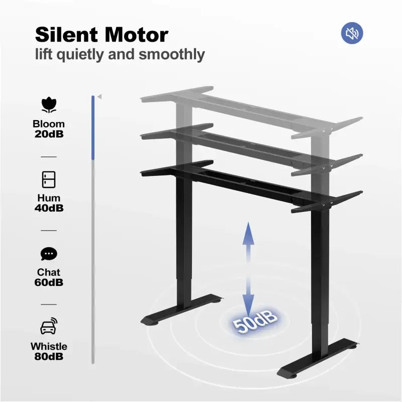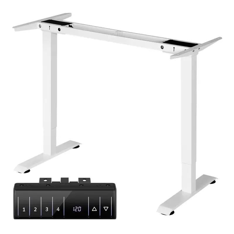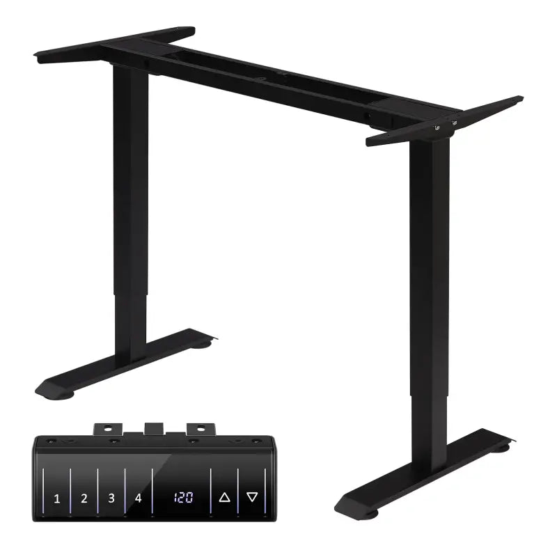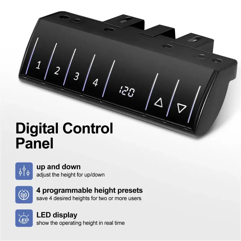 Dieser Metallrahmen ist mit fortschrittlichen Funktionen ausgestattet, die für Komfort und Bequemlichkeit beim Arbeiten sorgen. Mit einem Doppelmotor können Sie die Höhe beider Seiten des Schreibtisches synchron und stufenlos mit einer Geschwindigkeit von 25 mm/s verstellen. Darüber hinaus ermöglicht die Memory-Funktion das Speichern von 4 Höhen und das einfache Abrufen über die Tasten. Dank der intuitiven physischen Tasten und der LED-Anzeige lässt sich die Höhe einfach anpassen und in Echtzeit ablesen.